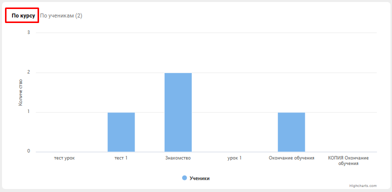 - По курсу - показывает, сколько учеников прошли каждый урок курса. Эта информация полезна при анализе доходимости курса